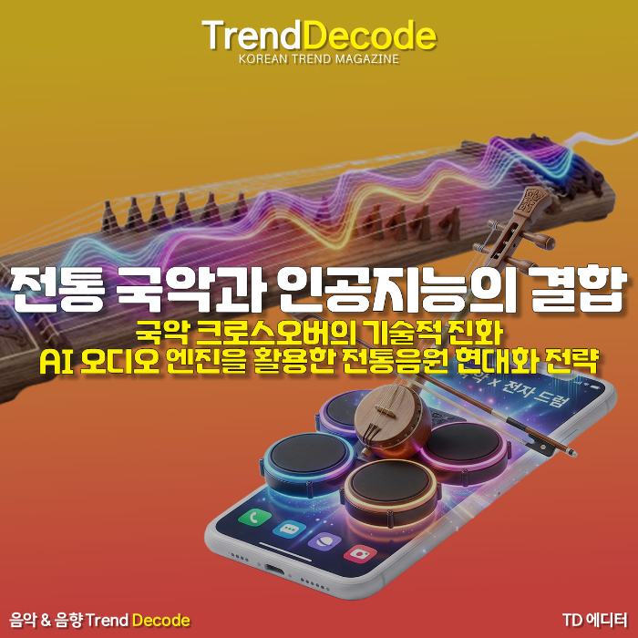 2026년 글로벌 음원 시장에서 한국 전통 국악과 인공지능 오디오 엔진의 결합이 새로운 프로듀싱 트렌드로 급부상하고 있다. 과거 국악기의 소리를 단순히 녹음하여 샘플링하던 방식을 넘어 최신 AI 제작 툴은 가야금과 해금의 미세한 떨림과 농현까지 디지털 데이터로 완벽히 추출하고 변조한다. 국악기 전용 가상 악기 보급률과 AI 생성 모델의 활용도가 전년 대비 210퍼센트 상승한 지표는 전통 음원이 현대적인 팝과 힙합 비트 위에 정교하게 재편집되고 있음을 보여준다. 글로벌 스트리밍 플랫폼 내 국악 크로스오버 장르의 소비량 역시 150퍼센트 증가하며 K사운드의 구조적 변화와 상업적 성과를 증명하고 있다. AI 기술이 창작의 진입 장벽을 낮추고 전통 음악의 글로벌 대중화를 이끄는 과정과 사운드 디자인의 진화 양상을 심층 분석한다.