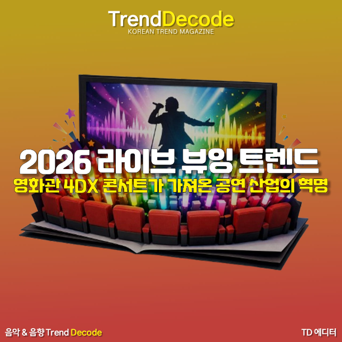 대한민국 공연 산업은 이제 공연장을 넘어 극장으로 그 영토를 확장하고 있다. 본 리포트에서는 라이브 뷰잉과 4DX 콘서트가 단순한 영상 관람을 넘어 하나의 독립된 문화 장르로 정착하게 된 배경을 정밀 분석한다. 임영웅의 '아임 히어로 더 스타디움'이 기록한 매출액 지표와 방탄소년단(BTS)의 글로벌 라이브 뷰잉 동시 접속자 수 등 구체적인 수치를 바탕으로 영화관이 콘서트장의 대체재가 아닌 보완재로서 기능하는 원리를 설명한다. 특히 좌석의 흔들림, 물, 바람 등 4DX 기술이 사운드 데이터와 결합하여 선사하는 압도적인 몰입감과 팬덤의 '싱어롱' 문화가 결합하여 만들어낸 새로운 경제적 가치를 조명한다. 본 글은 공연 실황 영화 시장의 급격한 성장세와 향후 가상 현실 기술과의 결합 전망까지 팩트 중심으로 심도 있게 다룬다.