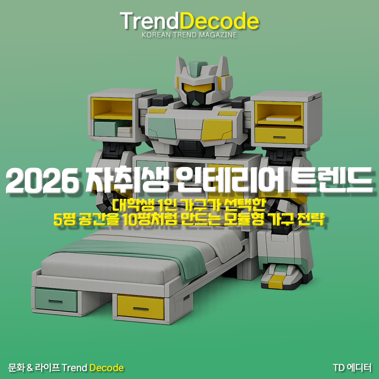 인테리어를 대하는 청년 세대의 태도는 완성된 결과물보다 끊임없이 변화하는 과정에 집중되어 있다. 5평 원룸이라는 한정된 공간에서 수면과 학습 그리고 여가와 식사가 동시에 이루어져야 하는 대학생들에게 공간의 분리는 물리적 벽이 아닌 가구의 배치를 통해 구현된다. 모듈형 가구는 하단에 바퀴가 달려 이동이 자유롭거나 상판을 접고 펼 수 있는 가변적 구조를 채택하여 낮에는 공부방으로 밤에는 침실로 공간의 성격을 즉각적으로 전환할 수 있게 돕는다. 이러한 유연함은 좁은 공간이 주는 폐쇄성을 완화하고 거주자에게 공간 통제권을 부여하여 정서적 안정감을 제공하는 중요한 심리적 기제로 작용한다.